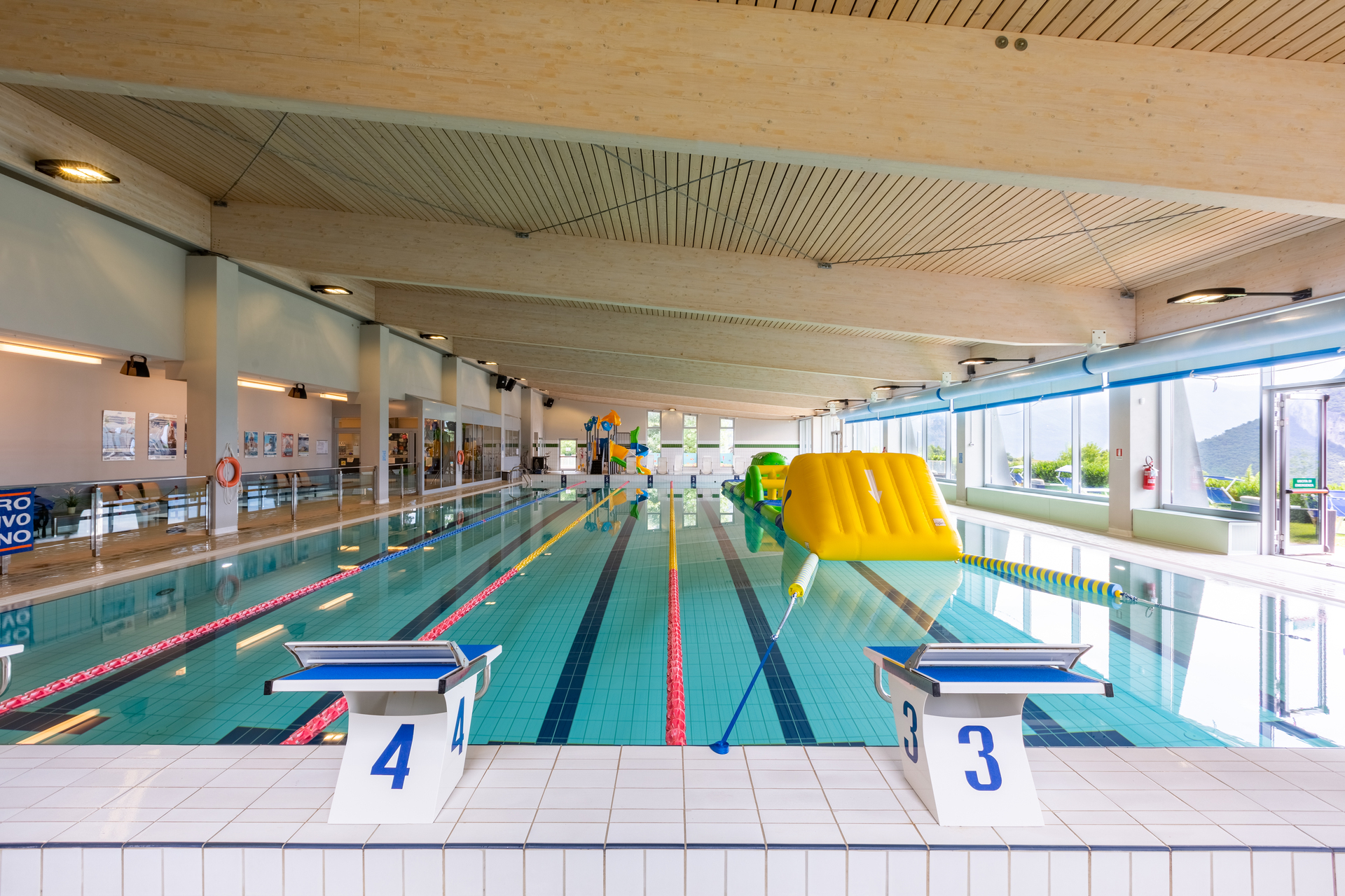 Ein sechsspuriger Pool zum Trainieren und Schwimmen und ein Freizeitpool mit Spielen und Rutschen.