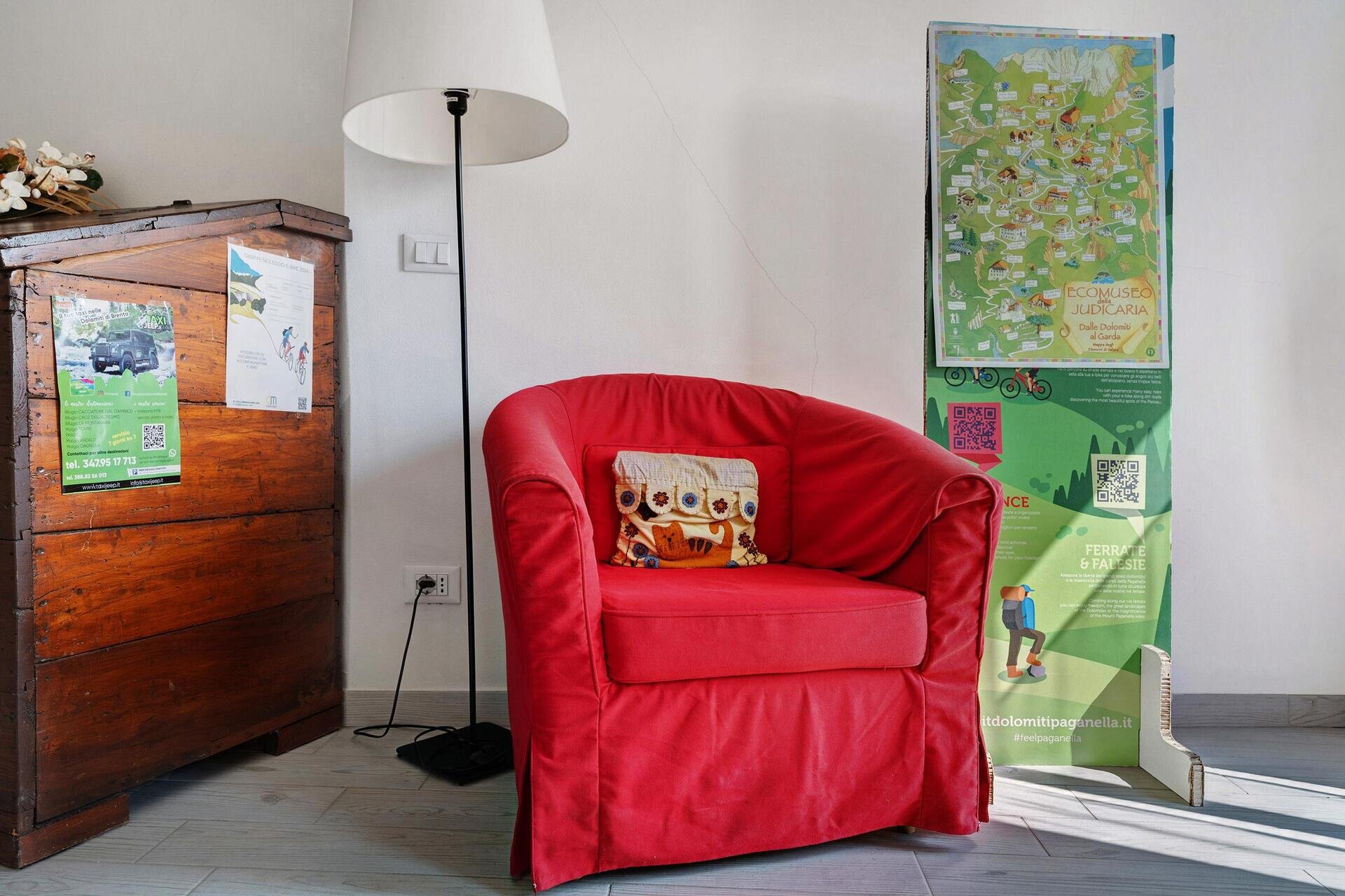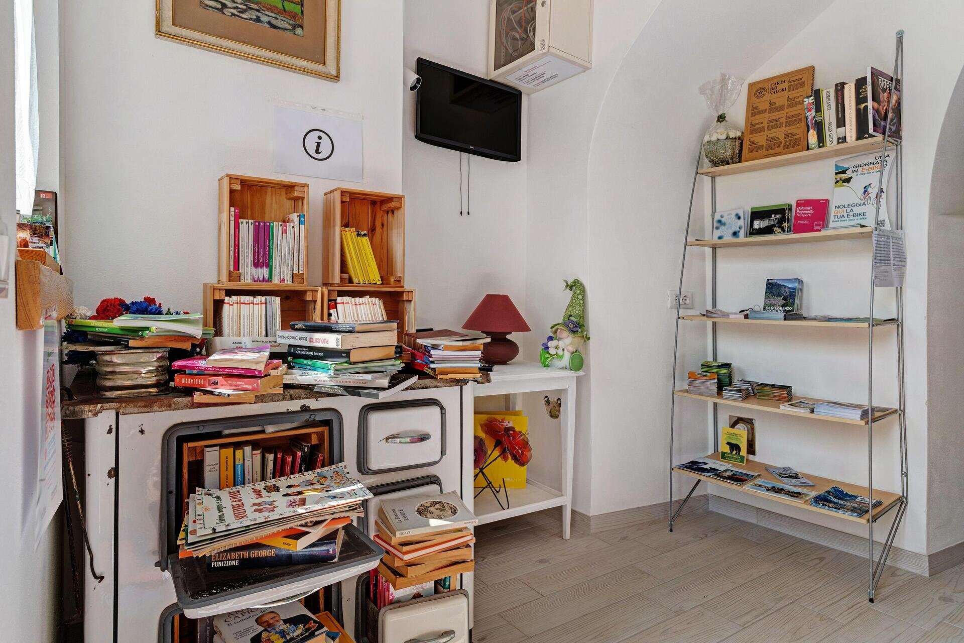 Erdgeschoß vorhandener Lese- und Fernsehraum mit der vom Wirtschaftsofen geschaffenen Bibliothek zum Lesen und Informieren über die Erlebnisse unserer schönen Gegend.