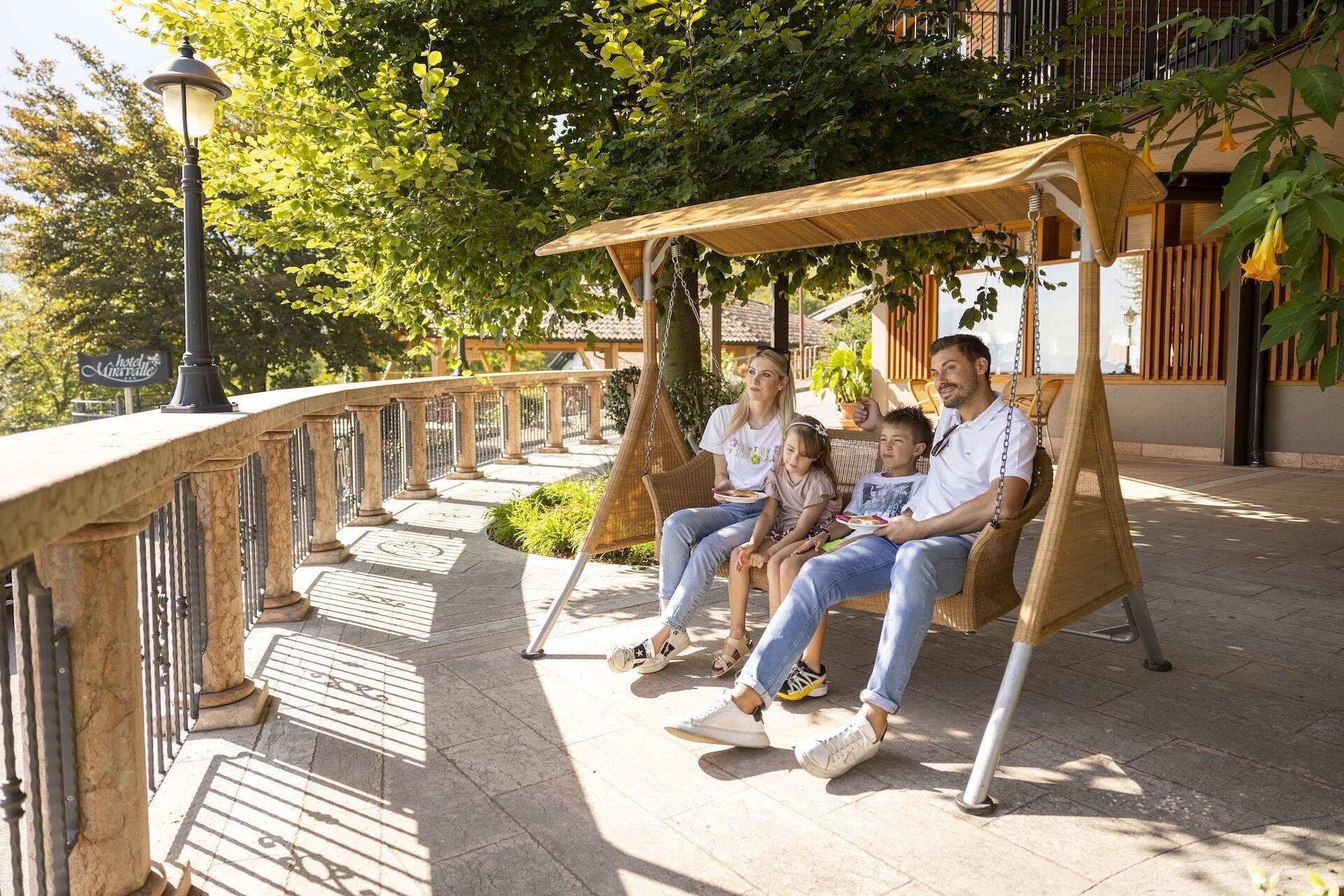 The Hotel Miravalle in San Lorenzo Dorsino, Trentino, is a family-run hotel located in a panoramic position at the foot of the Dolomites in the heart of the Adamello Brenta Natural Park. It features a terrace with a view, a lounge, and free parking. Thanks to its strategic location, you can easily reach attractions such as the Nembia Oasis (4.2 km), Lake Molveno (8 km), Andalo and Paganella (12 km), Trento and Riva del Garda (35 km), and Madonna di Campiglio (45 km).