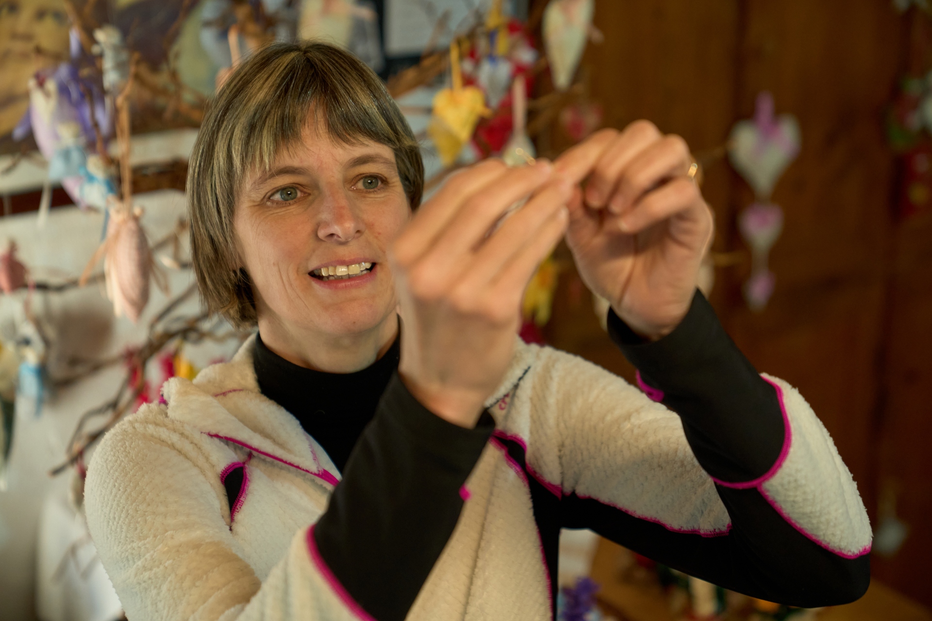 Prendo ago e filo e, con pazienza e cura, punzecchio la lana per trasformare una semplice pallina in un paesaggio incantato. Faccio nascere nanetti da un pezzo di legno, compongo vasetti di fiori dai mille colori, creo cuori imbottiti che sembrano battere di vita propria. Ogni creazione è un piccolo mondo, dove la fantasia prende forma e trova libertà.