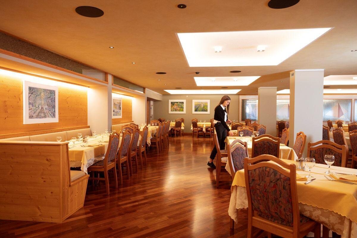 La spaziosa sala ristorante è il punto di riferimento per i buongustai che desiderano assaporare preilbatezze a pranzo e a cena. Il buffet della prima colazione è ricco di proposte, dolci e salate. La selezione delle materie prime è accurata e si predilige la preparazione di piatti con ingredienti di stagione.